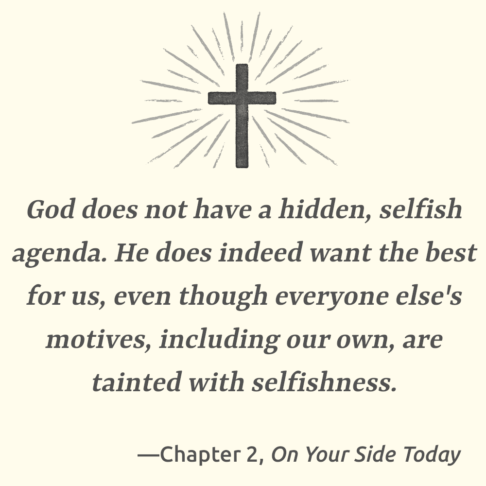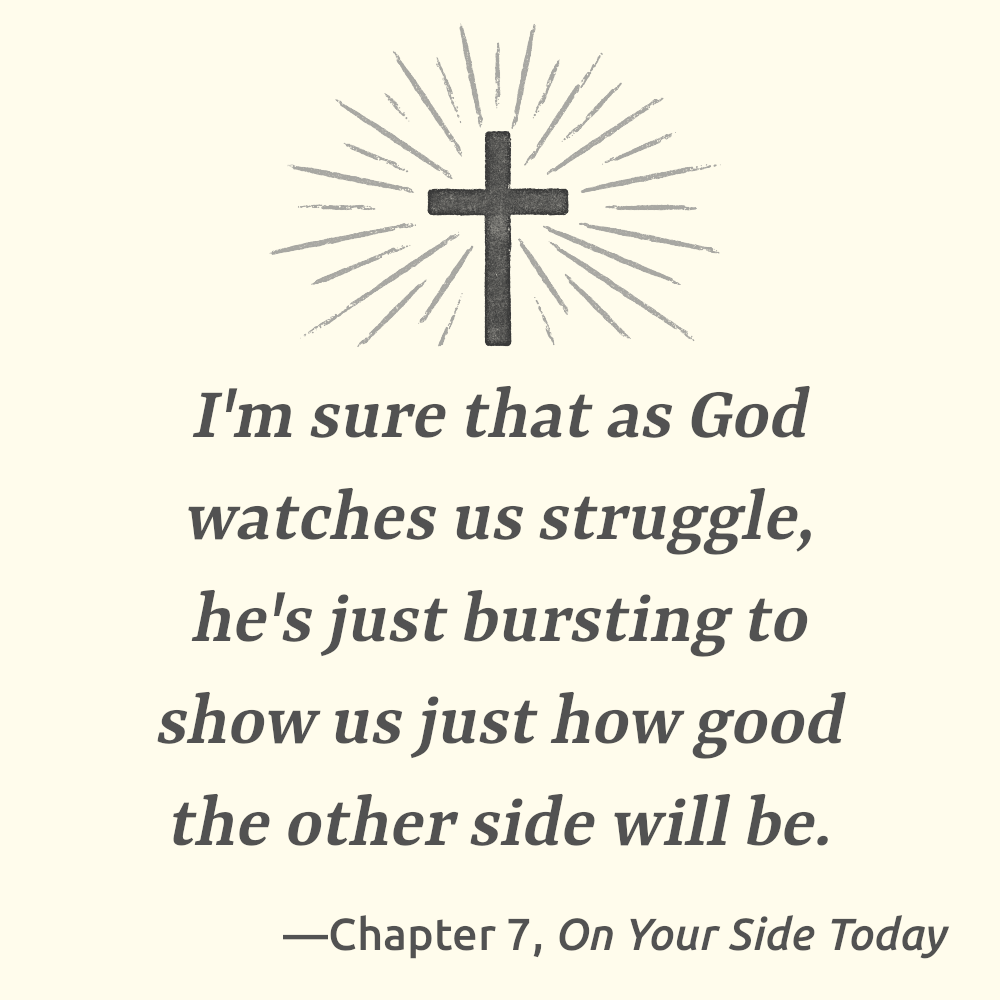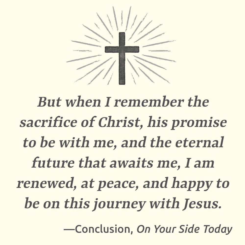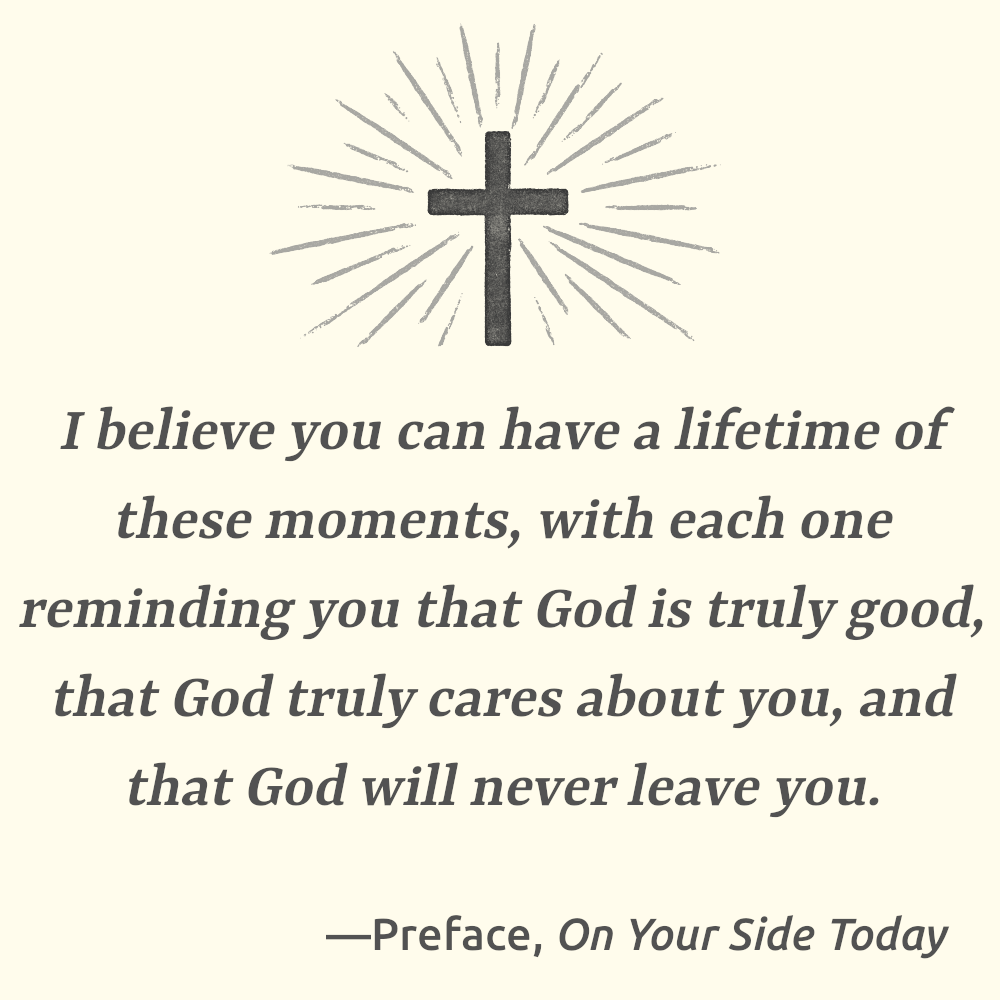 Thanks for your feedback! If you’ve read the book, I hope it encouraged you personally, and I would enjoy hearing what you think about it. Reach out to me on social media, or email me at onyoursidetoday@outlook.com.